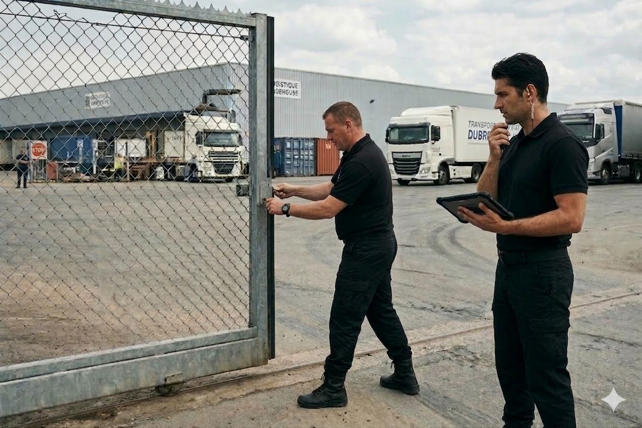 Contrôle d’accès poids lourds, surveillance 24h/24, prévention des intrusions et respect strict des protocoles de sûreté et de confidentialité.